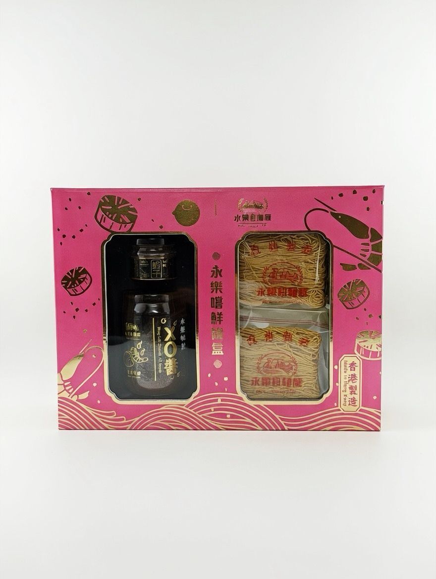 禮盒包括永樂秘製XO醬、永樂蝦子(25mL)及6包特濃蝦子麵