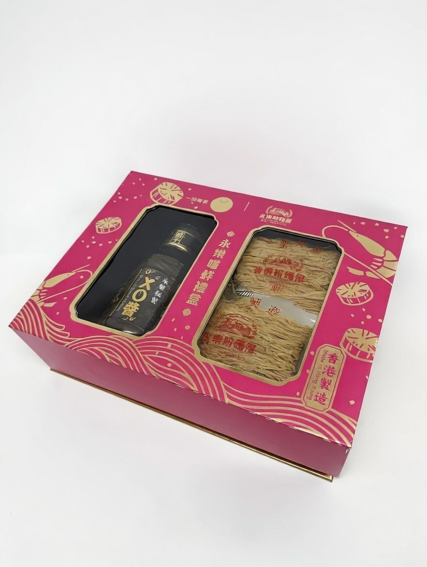 永樂蝦嚐鮮麵禮盒以粉紅色為主調,充滿喜慶感,讓你為親朋好友送上最佳節日祝福!